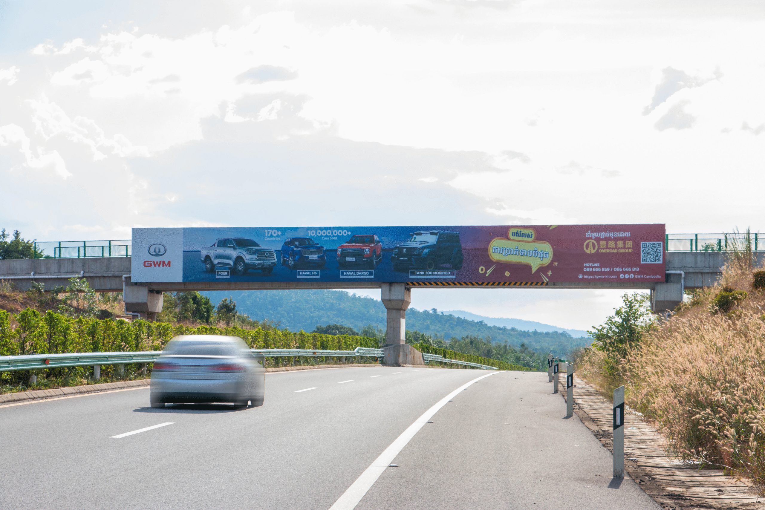 Maximize brand impact with large-format visuals on Cambodia’s only expressway.